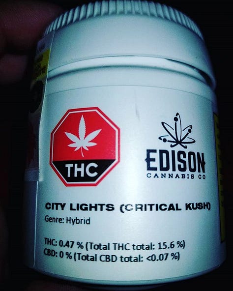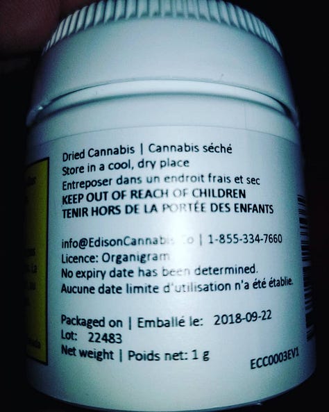 City Lights (Critical Kush) by Edison through Organigram. The bottle tells me that this Critical Kush has a THC total of 15.6% & a CBD total of <0.07%. This dried cannabis has a packaged date of 2018-09-22. I'll start by saying if there was ever something that would make me want to quit smoking weed, this very well could be it! Prior to opening the bottle, if you gave it a little shake, it sounded like there were a couple pills rattling around. Upon opening the bottle, I discovered it was not sealed whatsoever. There goes any chance of the cannabis (and I use that word loosely) having even the remote possibility of being fresh. The weed weighed 0.9 grams and had virtually no smell. No need for a grinder, a little pressure between the fingers and the weed bursts into dust. The smell that was left on my fingers afterwards was like I had just picked some dandelions. The joint that I smoked of this "cannabis" was absolutely horrible! It may be one of the worst things I've ever smoked in my life! I was embarrassed to share the joint with friends! We found it super harsh and it tasted like smoking hay. It left an awful aftertaste as if you just licked a dirty ashtray! It's safe to say I'll never buy anything from Edison again. And I'll be very hesitant in purchasing anything that has Organigram involved. For what I think is the first time ever, I'm going to rate this cannabis a big fat zero! 0/10! I paid $10.40 (plus tax & shipping) for 1 gram of absolute trash!