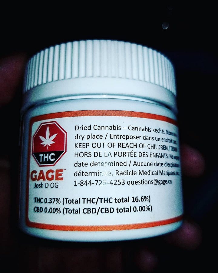 Josh D OG from Gage Cannabis weighed out to 3.5 grams. The package tells me this cannabis has a THC total of 16.6% and a CBD total of 0%. It was packaged on March 26 and I purchased it on April 27. After cracking the seal on the jar, I discovered some nice little frosty nugs. The smell coming from the jar was sweet with a peppery undertone. I'm happy to report that the weed wasn't bone dry like most of the legal weed! The weed broke up real nice & formed the perfect joint, so perfect that I smoked it before snapping a pic. The flavour was fairly weak with a bit of a sweet thing going on. It was a very smooth smoke. Quite enjoyable. The high was a relaxing Indica-like high. Sink into the couch, give no fucks kind of high. I really enjoyed the high this gave me. Could be my new night time smoke! 3.5 grams of the Josh D OG cost me $42.00 from Canna Cabana in Hamilton. I'd rate this sampling from Gage Cannabis a 7.5 out of 10. Side note, it was nice supporting the hometown crew from Gage. I'm looking forward to trying their other strains!